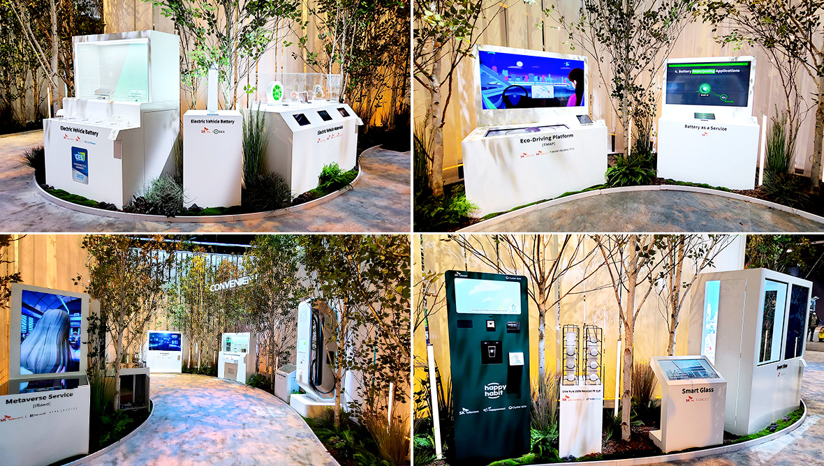 Through “Clean,” SK introduced its electric vehicle batteries and materials, hydrogen fuel cells, etc. which make the Earth cleaner. “Safe” theme includes what will lead us to the era of eco-friendly and safe mobility, such as BaaS (Battery as a Service) that can complete the whole value chain of SK’s battery business, and location-based service Eco-Driving platform. Under theme of “Convenient,” visitors can check SK’s technological prowess including metaverse service, eco-friendly semiconductors and AI processors, and fast chargers for electric vehicles. Lastly, the “Healthy” theme introduces various eco-friendly technologies such as the reusable cup collecting machine, which is part of the Happy Habit project that SK & Friends are promoting to reduce the use of disposable plastic cups.