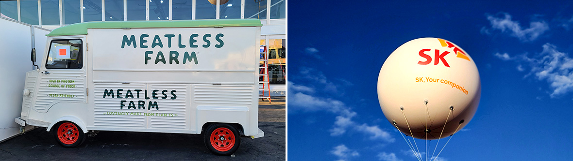 ▲ (Left) The food truck of a SK’s partner CES 2022 / (Right) The SK’s ad balloon showing the location of the food truck at CES 2022