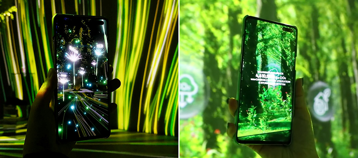 The Tree of Life zone is a place that reminds visitors of the importance of the environment to everyone. The zone was decorated with a huge tree at the center and videos played on four walls. When an icon symbolizing SK’s carbon reduction activities appears on the wall, visitors can scan it with the Buddy application and experience the AR content.