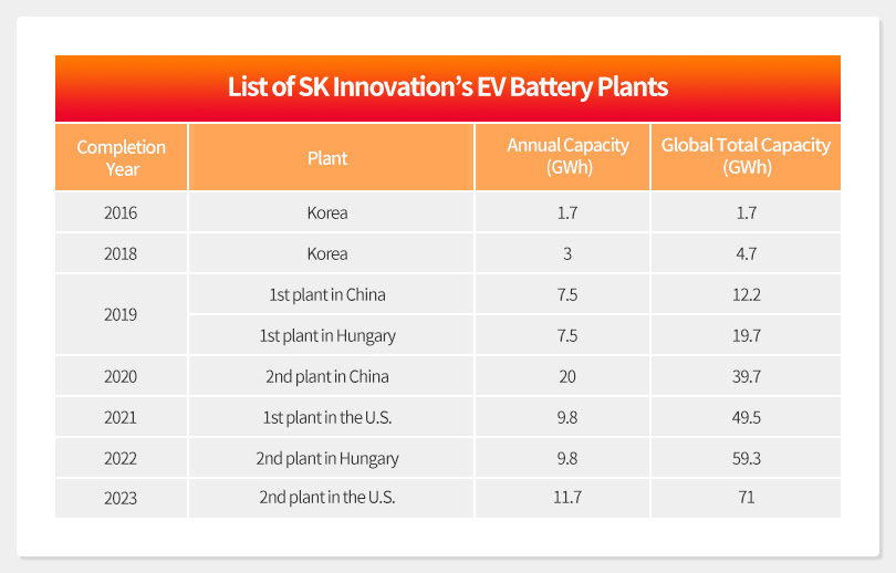 With its bold investments and constant efforts to expand its worldwide presence, SK Innovation expects to increase its current total global production level of 19.7GWh to 71GWh by 2023. The company aims to be one of the top 3 global players in the EV battery market, with the target of reaching 100GWh by 2025.