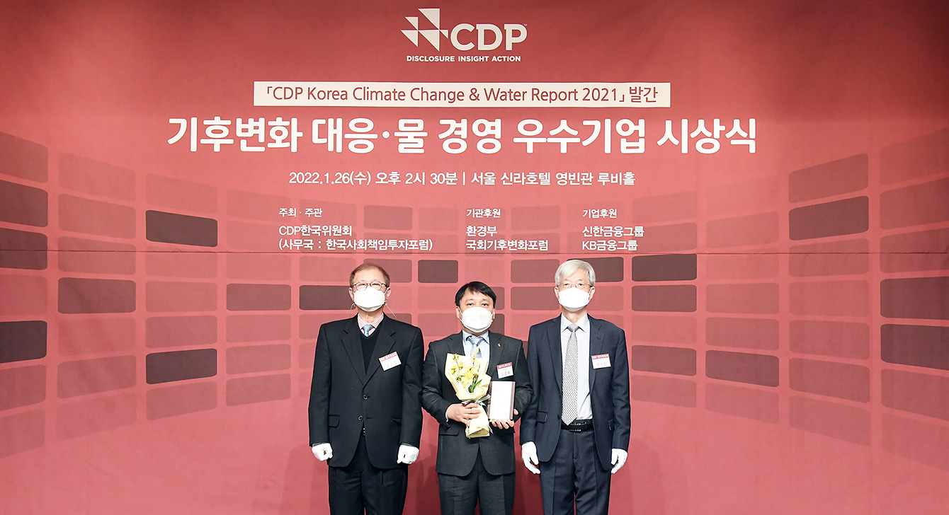 The ceremony award titled “2021 CDP Korea Report Publishing & Award Ceremony for Excellent Climate Change & Water Management Companies” was held at Silla Hotel, Seoul, South Korea on January 26. The event was attended by Korean Prime Minister Kim Bu-gyeom, Environment Minister Han Jeong-ae, Financial Services Commission Chairman Koh Seung-beom, CDP Korean Committee Chairman Jang Ji-in, etc. Kim Jong-hwa, Head of SHE Division, SK Innovation, represents the company to receive the award on that day.