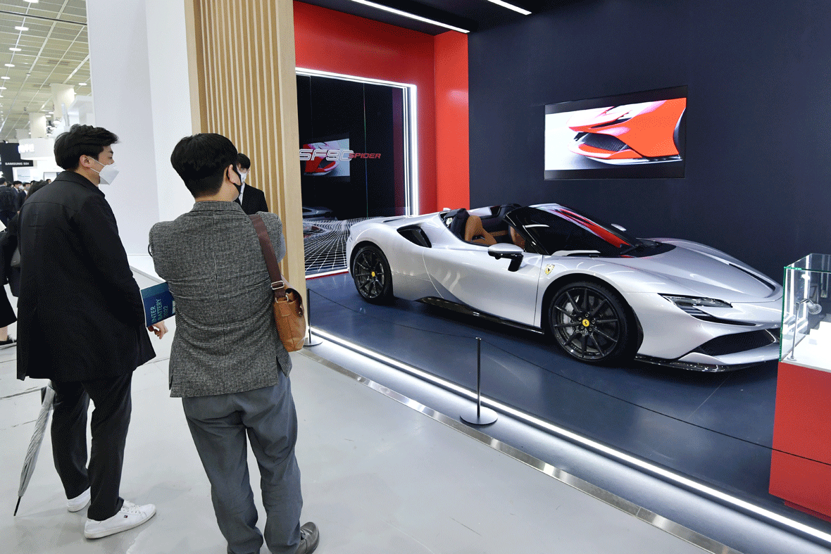 Various automotive manufacturers, such as Hyundai, Mercedes-Benz, and Ferrari, which are in partnership with SK On for the battery supply, provided their vehicle models to highlight the firm cooperative relationship. This has made SK On’s booth at InterBattery 2022 look like a mini motor show that attracted many visitors from the first day of the event. Especially, along with Hyundai Genesis GV60 and Mercedes-Benz EQA, Ferrari’s PHEV model SF90 Spider is also introduced at SK On’s booth this time as well. It is showed in “Performance Zone,” offering visitors an intriguing plan of Ferrari, which is widely known as a manufacturer of high-performance ICE (Internal Combustion Engine) supercars, to go electric.