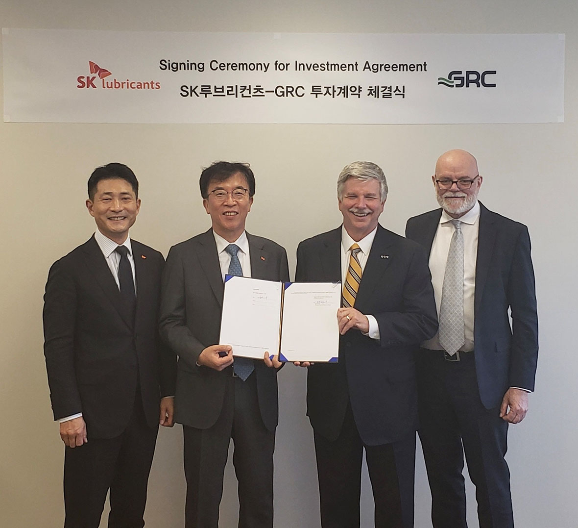 The Korean company said that on March 29 (US local time), a signing ceremony was held for the investment. The ceremony was attended by CEO of SK Lubricants Cha Gyu-tak, CEO of GRC Peter Poulin, and officials from both companies.