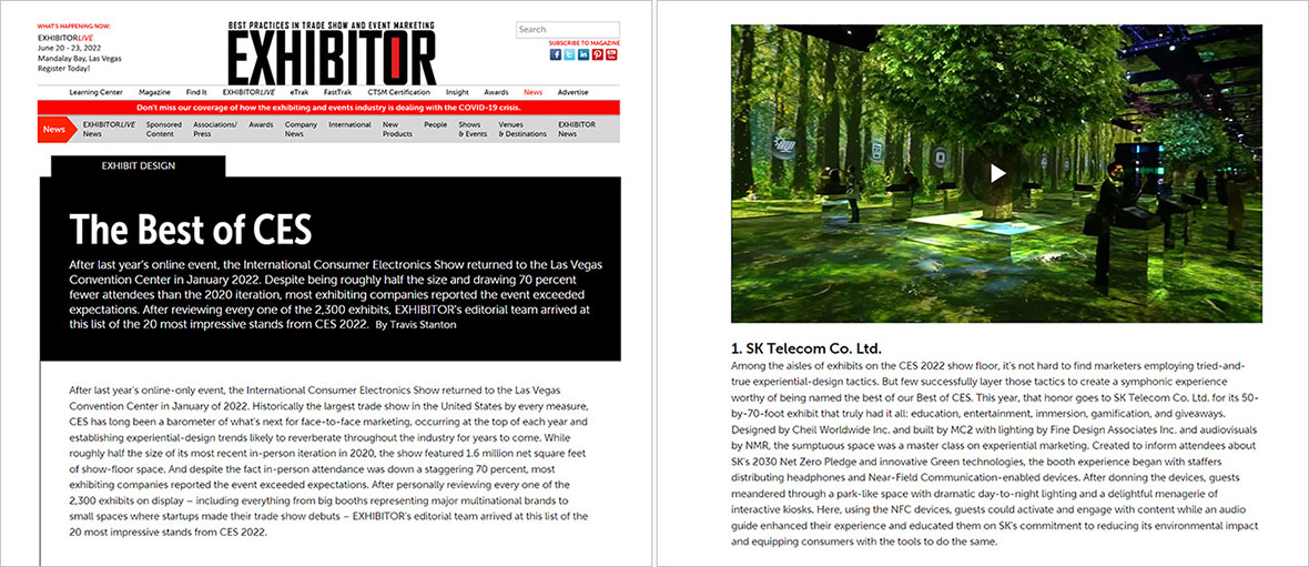 ▲ SK’s booth was introduced in The Best of CES article released by Exhibitor Magazine in early March 2022. Images captured from Exhibitor Magazine.