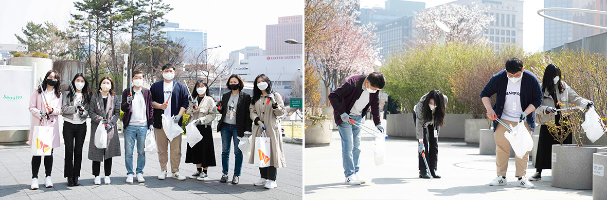 ▲ On April 11, Vice Chairman Kim Jun participated in plogging activity in the areas around Jongno-gu, Seoul, with the new members of the company