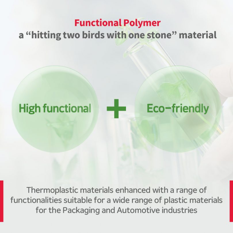 While environmental pollution caused by single-use plastics is getting worse day by day, the need for plastics is also growing due to modern lifestyles. Producing materials that are both high-functional and green materials, thus, becomes an essential challenge to petrochemical companies.