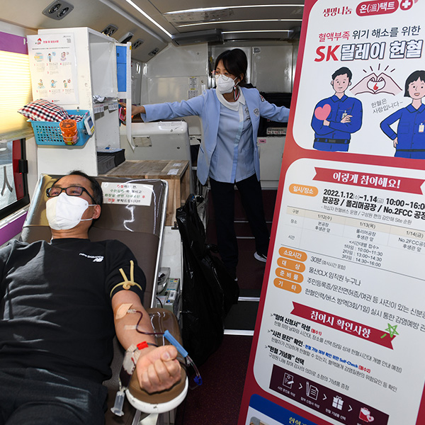 SK Innovation members in Korea participate in the “SK Relay Blood Donation Campaign”